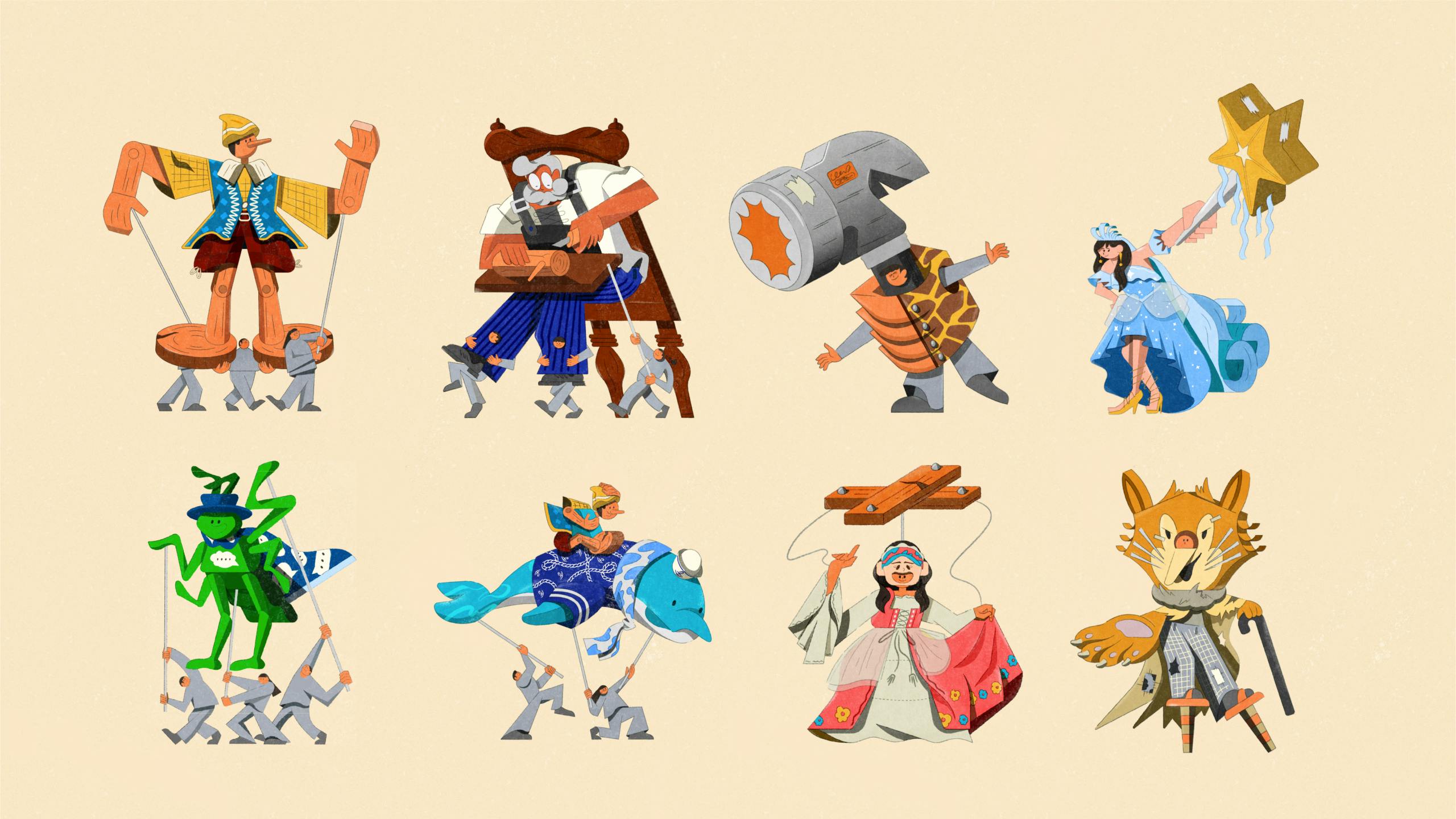 When creating his Pinocchio, Toy Shop Boy turned to the original 1880s novel, using its descriptions as the base for a recognisable yet unique take on the puppet. His nostalgic, grainy aesthetic was a natural match for the fairytale world. Then, as the story goes, with a little animation magic, the character came to life.