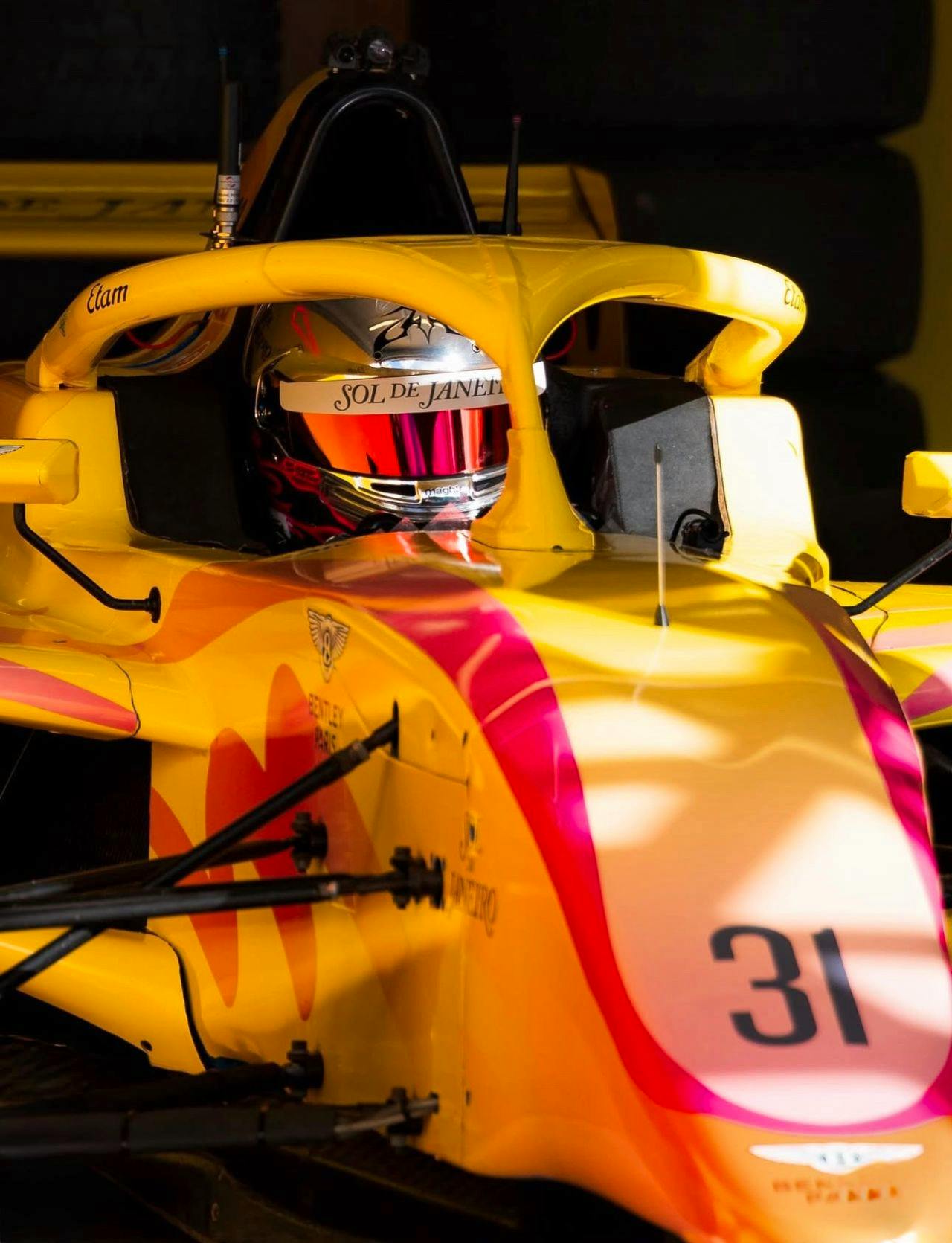 His first time designing a racing car, it was a thrilling change of gears for the artist. “I was really excited to expand my style into something I've never done before. My work reflects a lot of energy and speed, so this was a perfect blend for me.” With Bernardo in the driving seat, Sol de Janeiro brought true dynamism to the track.